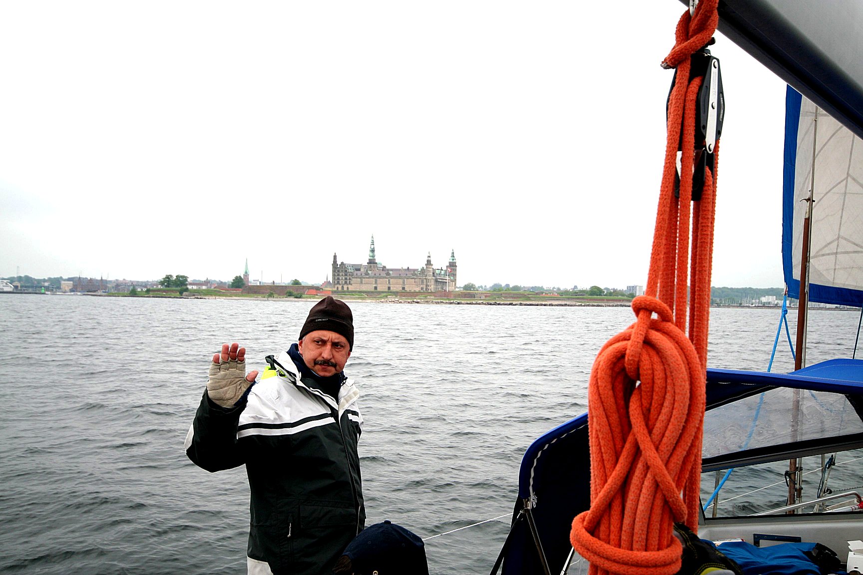 Na jednej - Czarek, na drugiej jacht pod pięknym żaglem.