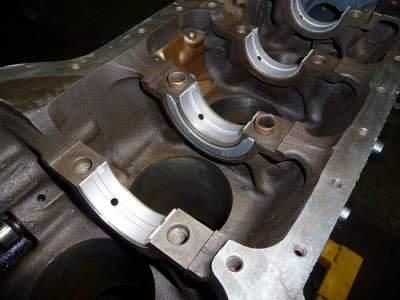 Rys. 3 - Półpanewki osadzone w płaszczyźnie podziału bloku. Zwróćcie uwagę na prawidłowe pozycjonowanie ich zamków.