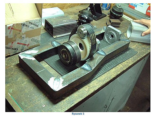 Pytanie: Panie Tadeuszu! Nie za bardzo podoba mi się konstrukcja z kołem pasowym, bo w tym rozwiązaniu przy maksymalnych obrotach alternator będzie się kręcił za szybko (albo musi mieć duże koło). Proszę o wyjaśnienia.