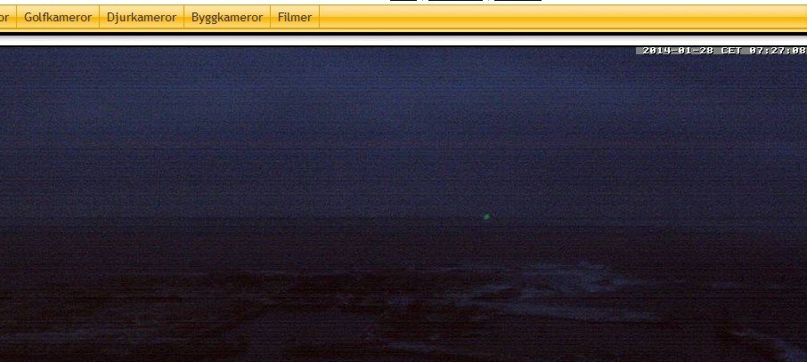 Na nocnych obrazach ze skierowanej na polnoc webkamery, umieszczonej na latarni Utklippan, w obrazach odswieżających się tam co kilka minut : http://www.webbkameror.se/webbkameror/utklippan/webkamera_utklippan_1280.php można oprocz jednolitej czerni w wiekszości przypadkow zobaczyc zielona kropkę (nieco po prawej).