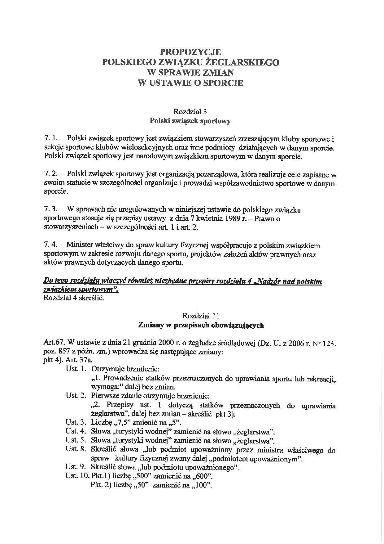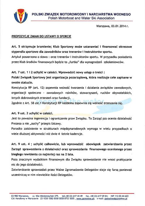 Tymczasem Polski Związek Żeglarski zgłasza do prac Nadzwyczajnej Podkomisji d/s nowelizacji Ustawy o Sporcie zmiany w zupełnie innej ustawie, czyli Ustawie o Żegludze Śródlądowej. To zaiste dość ciekawe posunięcie, bowiem panowie chcą zmieniać zupełnie inną ustawę, niż ta do której zmian powołano podkomisję.