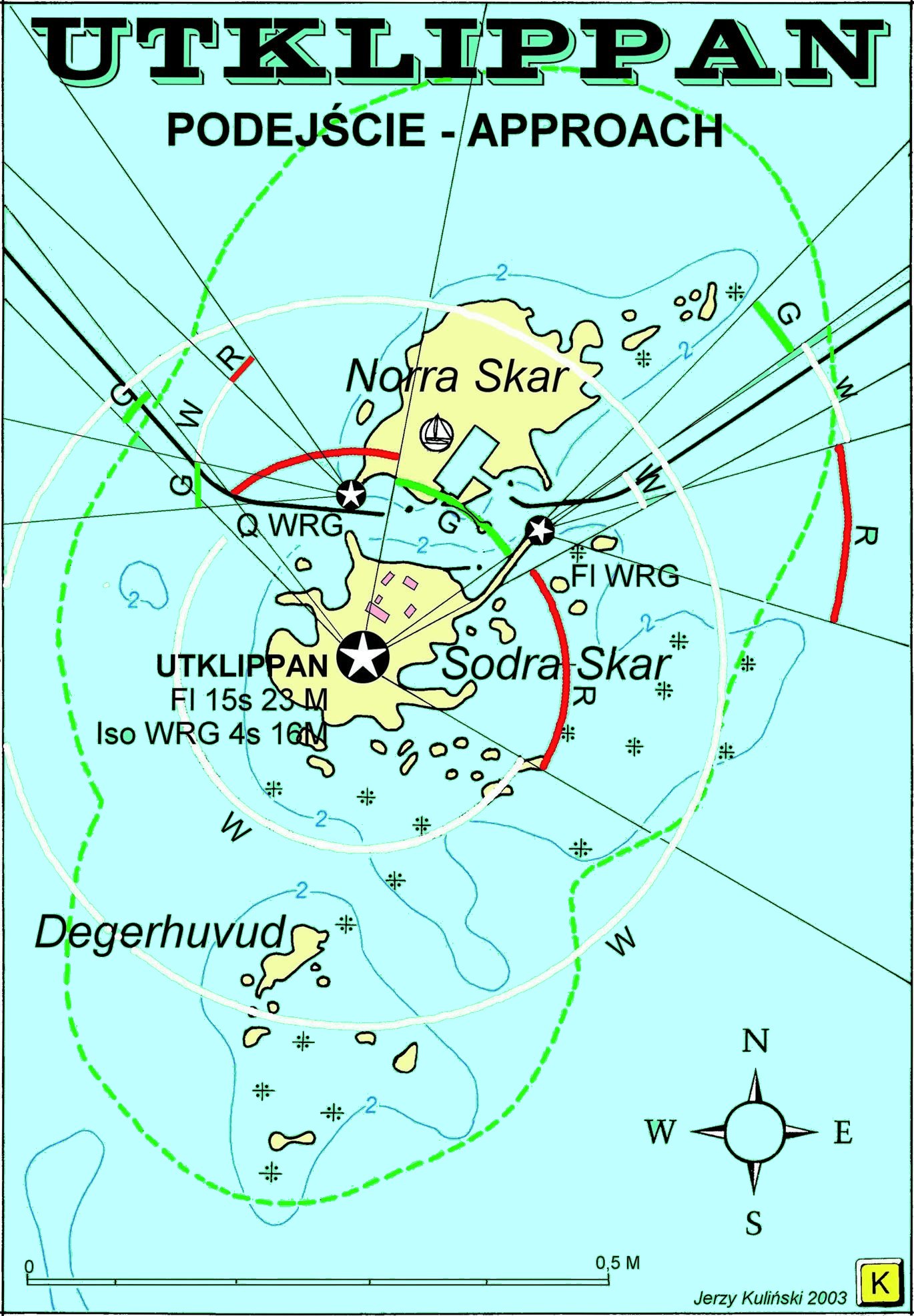 Utklippan (locyjka "GOTEBORG, OSLOFORD i CAŁKIEM BLISKO") Mapka obszaru między wyspami Utklippan i Utlangan