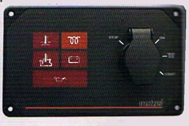 W nim montujemy jeden przełącznik wychyłowy oraz dwa przyciski – jeden od rozrusznika, drugi od grzania świec. Przełączniki powinny być wysokiej jakości – kupujemy je na demobilu wojskowym (5-10 zł/szt.). Dobrze sprawdzają się wszystkie przełączniki lotnicze. Na koniec drobna sugestia. Do przełącznika zastępującego stacyjkę podpinamy czerwoną diodę 12V przed jego wejściem. Sygnalizuje ona, że po oddaniu cum nie zapomnieliśmy ukrytym wyłącznikiem podać napięcia na panel rozruchowy (3 zł). Dioda świeci cały czas, ale pobór 10mA jest niekrytyczny dla bilansu energetycznego naszego jachtu.