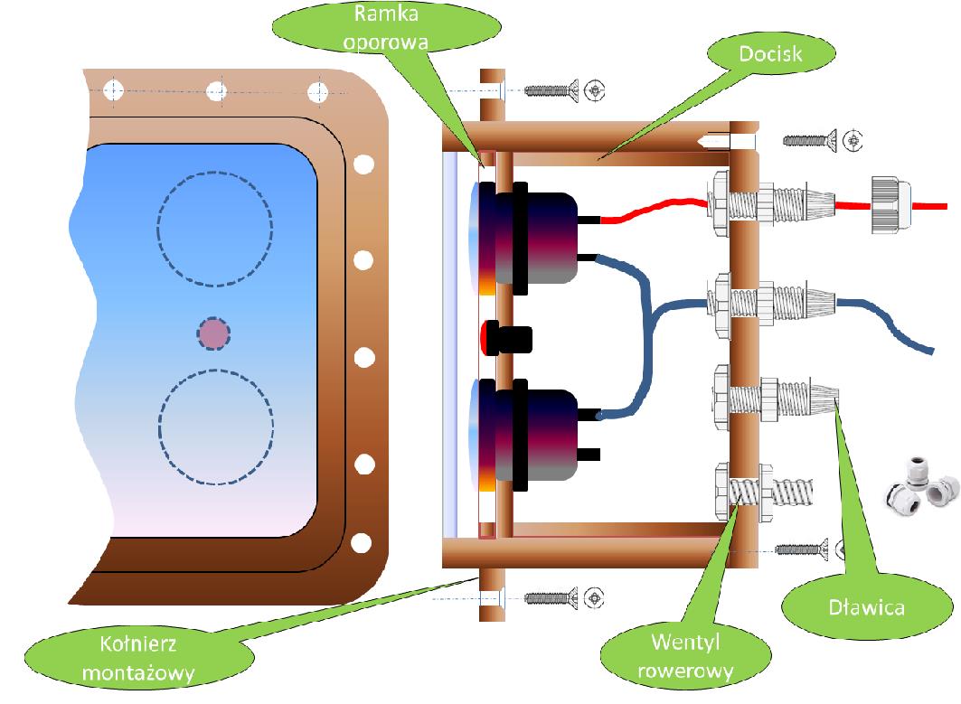 Tak jak poprzednio wyprowadzamy przez dławice przewody i montujemy uszczelnione zamknięcie tylne.
