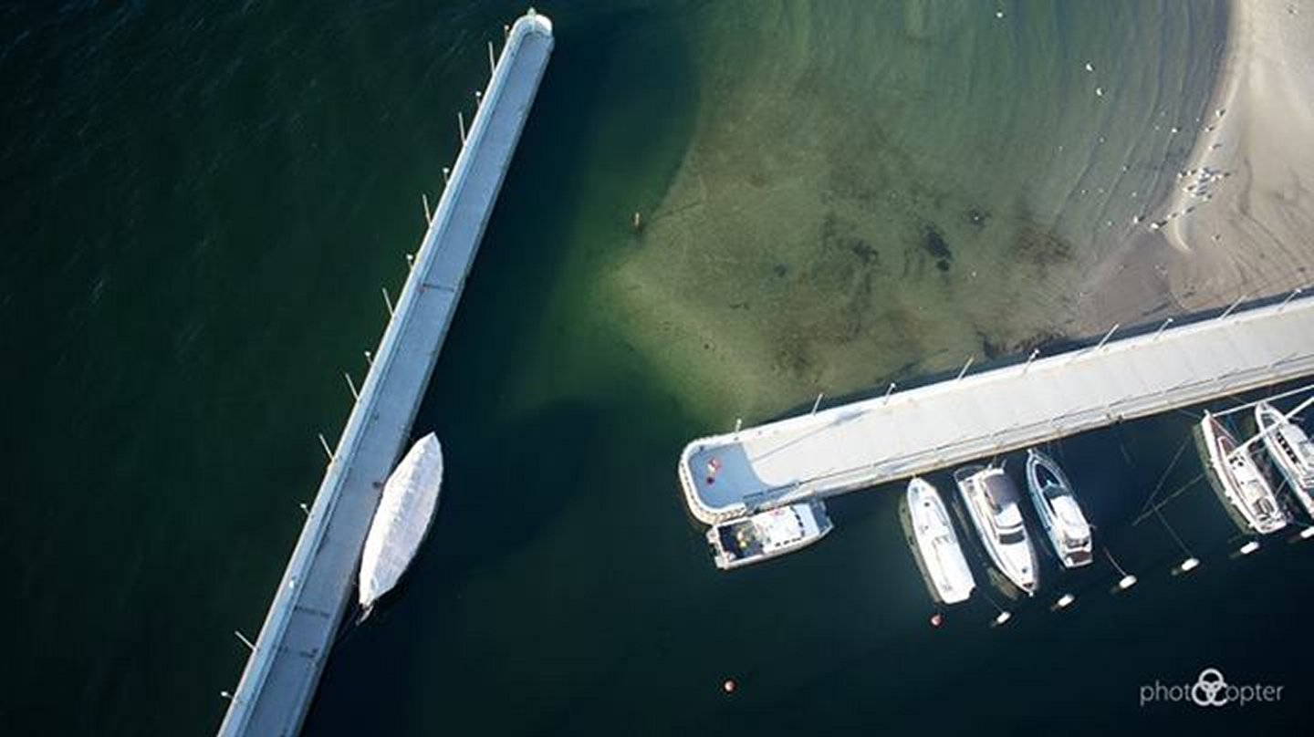 To jest właśnie widoczny z drona-helikoptera skutek lekkomyśnego przedłużenia falochronu wschodniego.