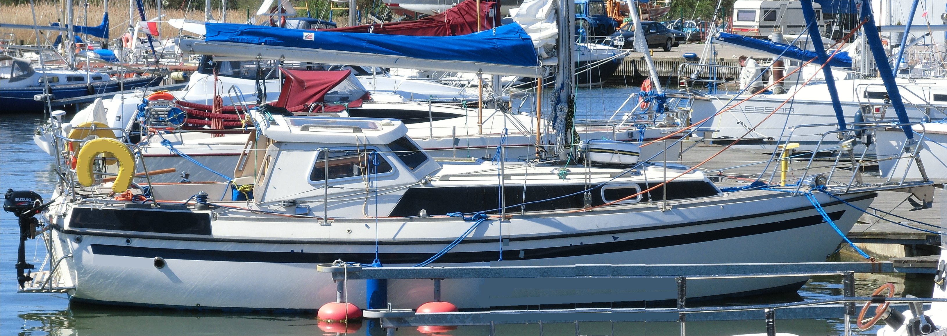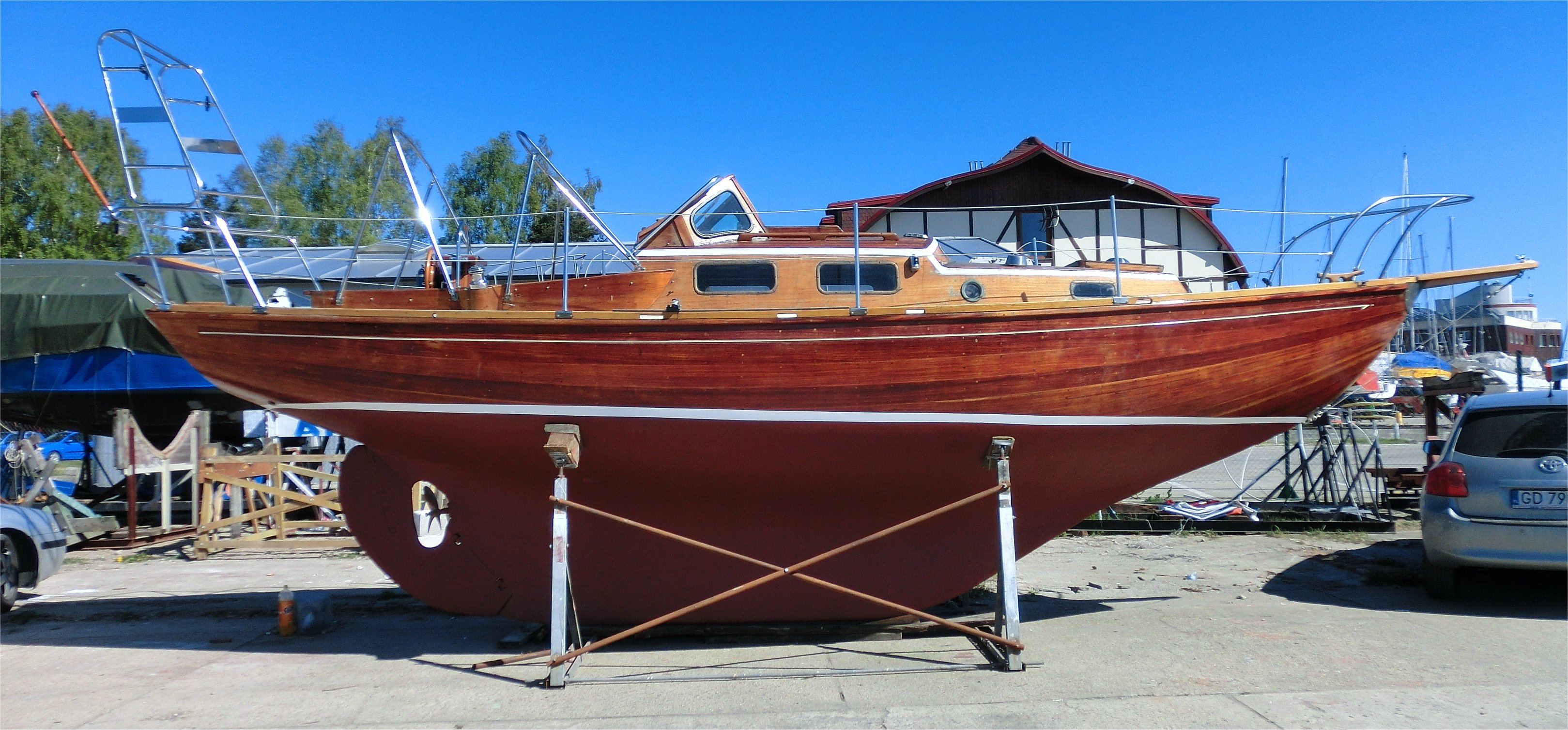 Spotkałem w Górkach wielu Przyjaciół, było miło. Niektórym z nich musiałem wytknąc niedotrzymanie przyrzeczeń (newsy dla SSI). W biedniutkiej, ale tętniącej życiem przystani AKM wypatrzyłem sympatycznego drewniaczka-oldtimera. Oczywiście "prywatny import" ze Szwecji. Czyścimy Szwecję jak się da. Linia jachtu spokojna, tradycyjna. Delikatnie dobudowana sztywna owiewka nadzejściówkowa. Nie "komponuje się" z drewnianym kadłubem "wielbłąd" rufowy - błyszczący stalą nierdzewną. Armatora podnieca antycznośc i nowoczesność jednocześnie. To tak trudne do pogodzenia jak troskliwa żona i młodziutka przyjaciółka. Tak prawdę mówiąc - ja go trochę (subiektywnie) rozumiem.
