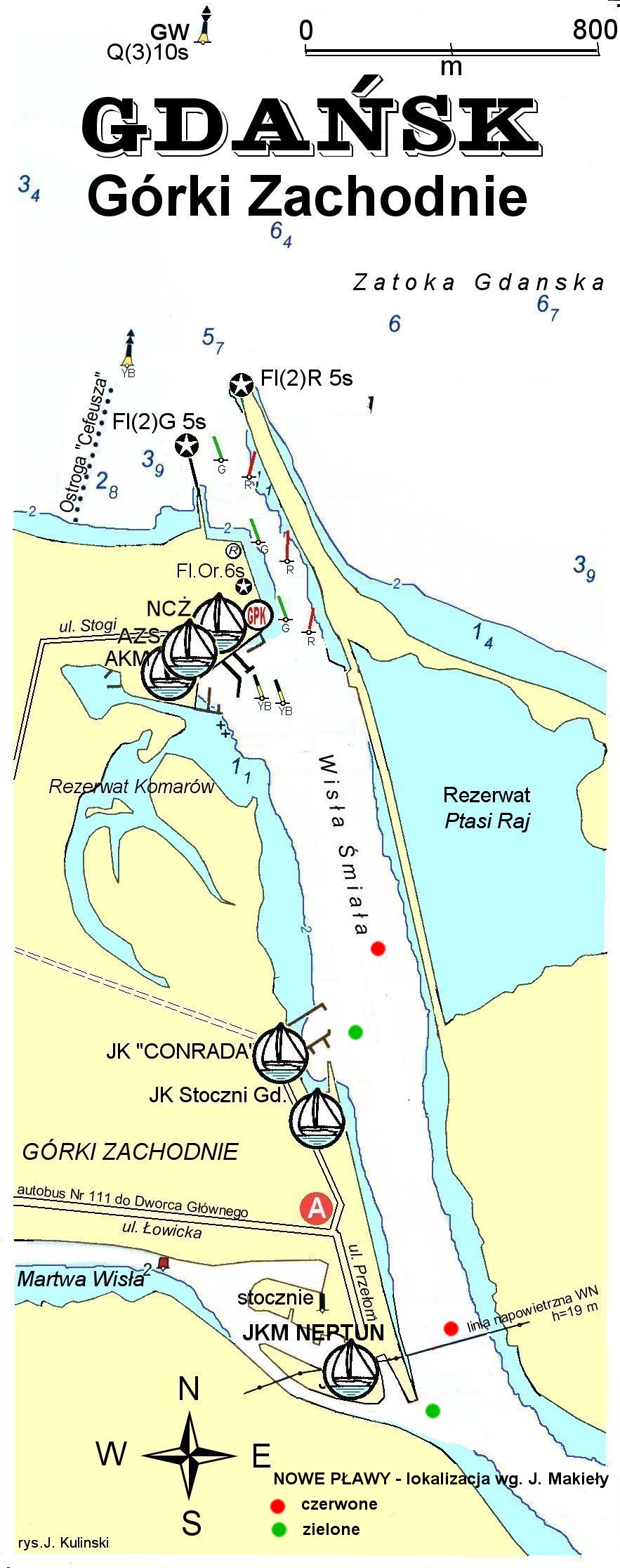 I tak - w miejsce boi kardynalnej zachodniej, stojącej dotychczas pod przewodami linii wysokiego napięcia przeciwko Jachtklubu Morskiego "NEPTUN" pojawiła się czerwona boja farwaterowa. Na zakręcie Wisły Śmiałej i Motławy (przy Jachtklubie Morskim "NEPTUN") ustawiono zieloną boję farwaterową. Natomiast naprzeciw Jachtklubu Stoczni Gdańskiej i Jachtklubu im. Conrada pojawiły się dwie nowe boje nawigacyjne - czerwona i zielona.