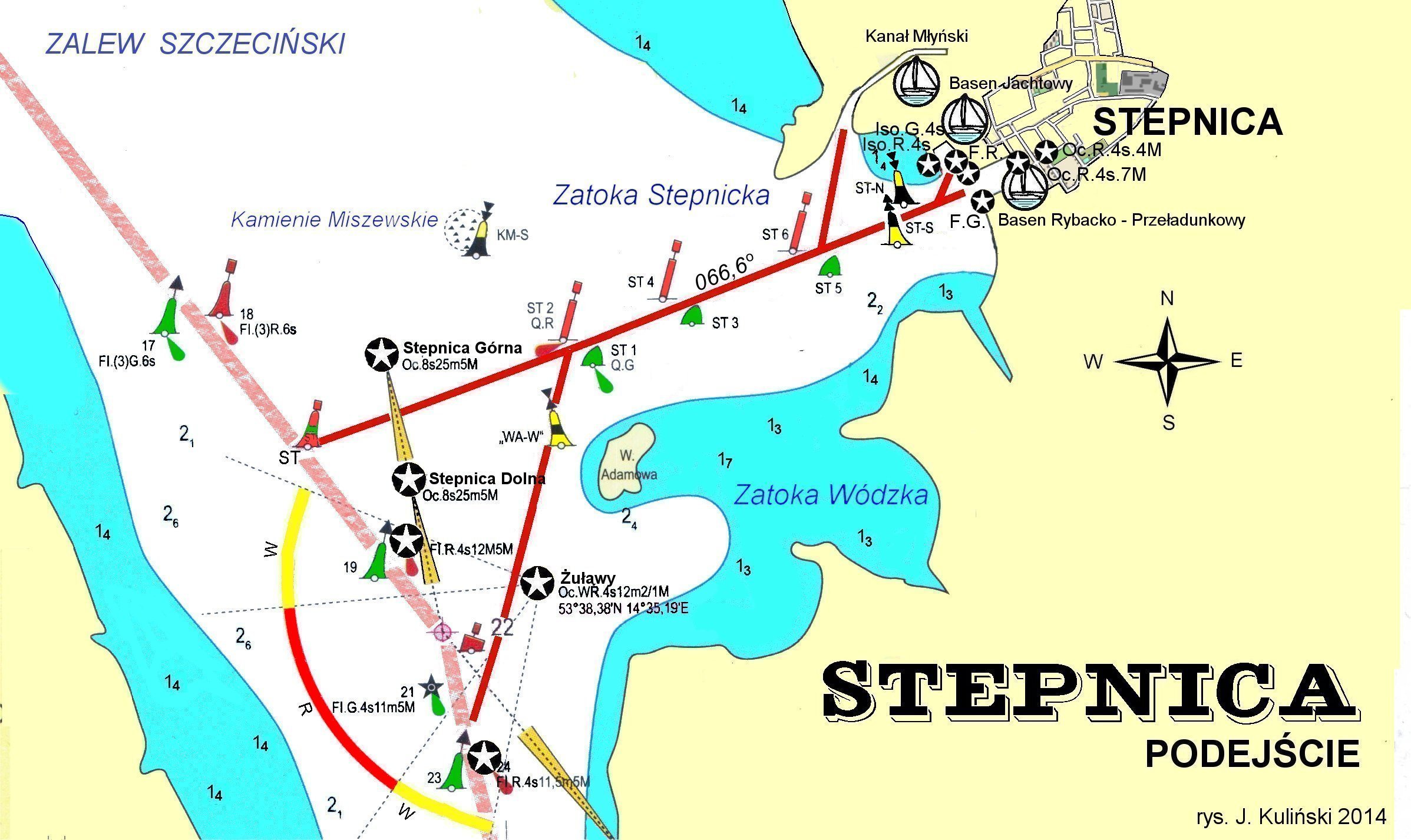 w planie podejścia do Stepnicy wkradł się drobny błąd, na znakach kardynalnych ST-S oraz ST-N malowanie jest niezgodne ze znakiem szczytowym.
