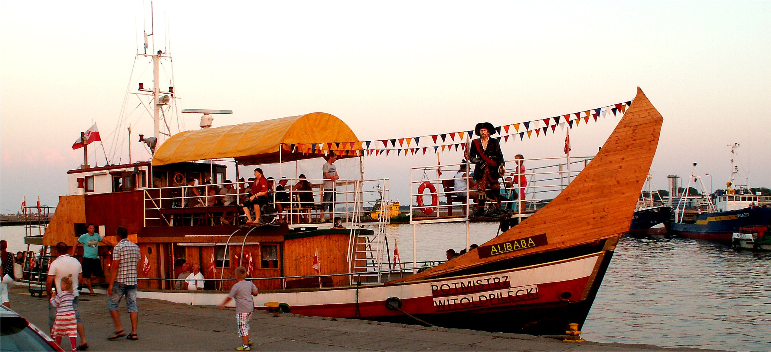 I jeszcze jedna fotociekawostka. Jestem pełen szacunku dla ciężkiej pracy dawnych rybaków, którzy dziś obsługują statki wycieczkowe. Wychodząc na wprost potrzebom turystów ich statki mają oryginalną architekturę, dobudowane fikuśne dzioby, są najrozmaiciej udekorowane np. figurkami piratów i mają sympatyczne nazwy, czasem nawet dwie…