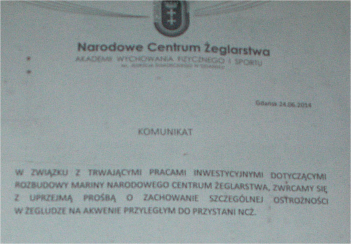 Co do kłopotów nawigacyjnych przy wchodzeniu do Górek Zach. związanych z rozbudową portu NCŻ to w załączniku przesyłam stosowne Ostrzeżenie Nawigacyjne z dnia 01.sierpnia 2014 r.,