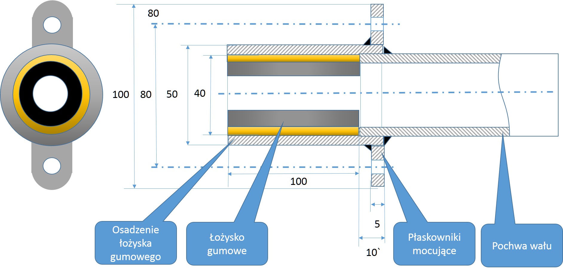 Wykonamy ją w dwóch wariantach. Pierwszy z nich zakłada, że woda do łożyska gumowego jest podawana od strony dławicy tylnej.