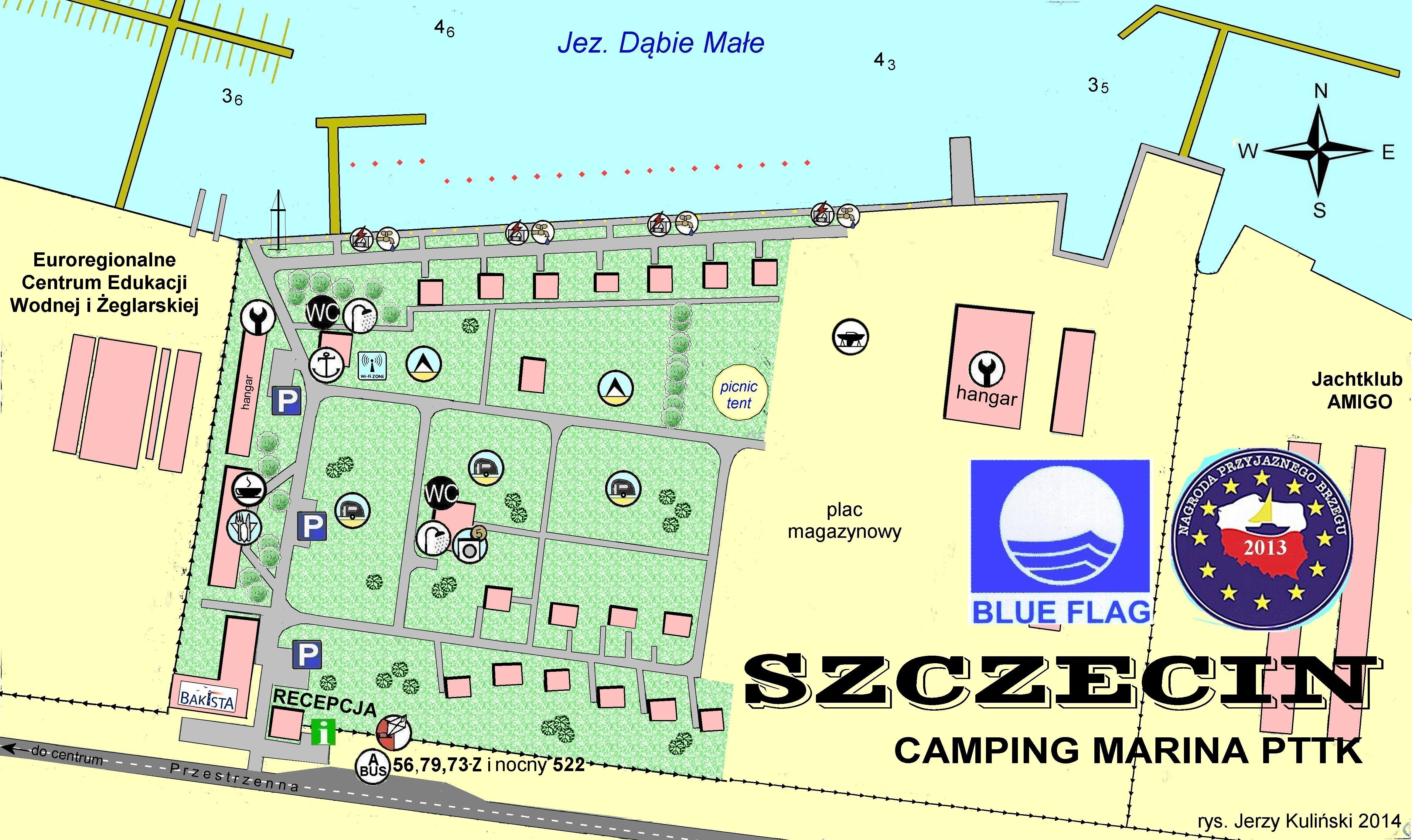 Powoli, powoli zbliżam się do końca serialiku jaskólek prezentujacych wybrane przystanie Pomorza Zachodniego. To zachęta do czytania"ZAGLI". I tak dobrnąłem do Szczecina, któremu przypisałem funkcję deseru. W Szczecinie przystani jachtowych dużo, ale ja mam swoje ulubione. Dziś Camping Marina PTTK nad jeziorem Dabie Małe, prowadzona przez Olę i Andrzeja Kocewiczów. Przystań duża, wielofunkcyjna, bardzo zadbana, z mnóstwem atrakcji: ogrodowo-botanicznej, tawerny z historycznymi krzesłami, muzeum morsko-regionalnym, usługami szkutniczymi i ... hydrotechnicznymi. Można tu odpocząć w uroczej scenerii, cumować, obiadować, wynając domek, rozstawić namiot, zaparkować campera, posurfować w internecie, a może nawet odbyć rejsik na pięknym oldtimerze pod brunatnymi żaglami. Po drugiej stronie ulicy Przestrzennej - lotnisko sportowe.