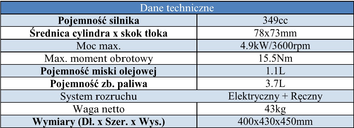 Proszę zwrócić uwagę, że silnik nie jest dużo cięższy od swojego czterosuwowego kolegi z elektrycznym rozrusznikiem (wersja przyczepnego silnika benzynowego)