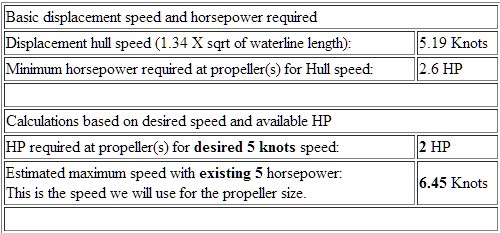 Wyniesie ono dla prędkości 6,5 węzłów: 3.8 kW x 250 g/kWh = 950 g /h. Jest to oczywiście nieracjonalne gdyż przekraczamy teoretyczną prędkość kadłuba.
