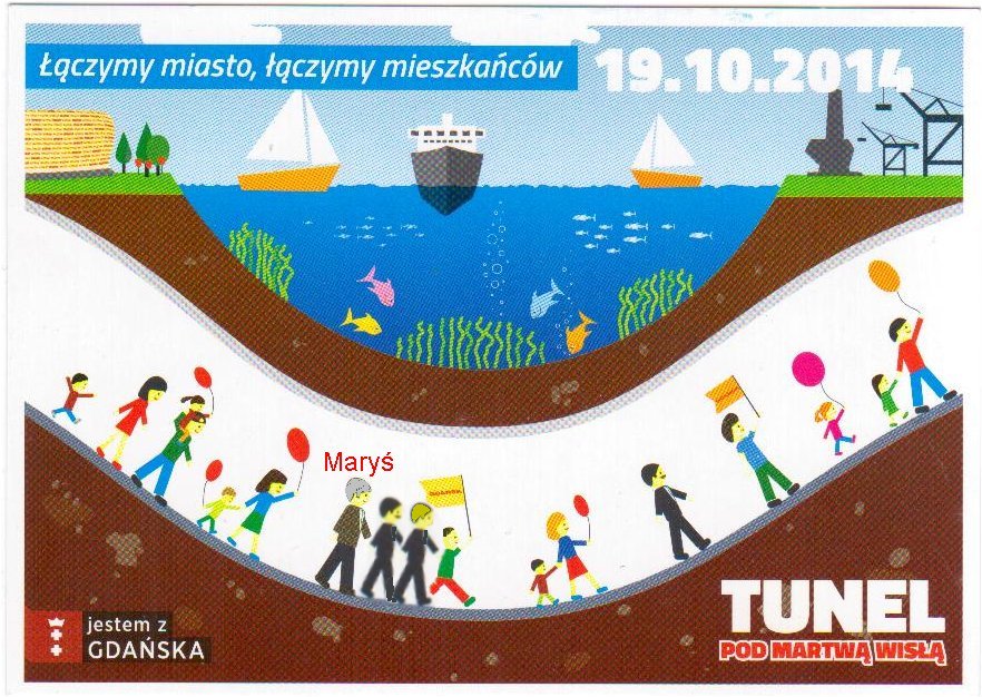 W niedzielę 19 października 2014 gdańszczanie zostali zaproszeni do przejścia tunelem pod Martwą Wisłą z ronda przy stadionie do Westerplatte. Samochody pojadą w przyszłym roku. Pogoda była przecudowna - słońce i plus 21 stopni; bezwietrznie.
