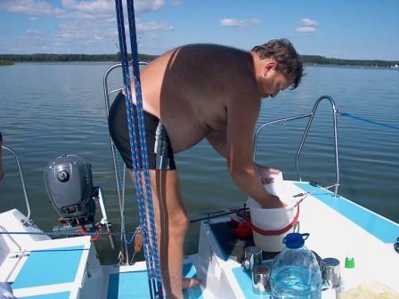 Mój niezłomny zdobywca patentów, który mycie garów ma w pogardzie i w domu ich nie tyka - ulega zbawiennemu wpływowi cieczy za burtą i odmienia swą niezłomność - jeśli pływamy we dwoje, to on myje gary :) :) :). Ponad 30 lat wspólnego żeglowania nauczyło mnie nie wykorzystywać tego faktu - dla dalszej harmonii :)