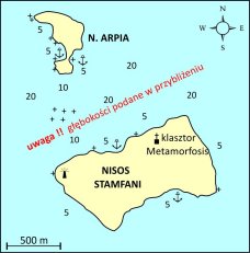 Archipelag Strophades to dwie małe wysepki leżące 25 Mm na południe od Zakinthos i 28 Mm na zachód od Peloponezu. Większa - Stamfani znana jest głównie z leżącego na niej monasteru Metamorphosis. Budowę klasztoru powstałego w roku 1241, sfinansowała cesarzowa Bizancjum. Ten imponujący, szczególnie z perspektywy małej wyspy budynek, oparł się ciągłym atakom wrogów, czasu i pogody i stoi tam nadal. W czasach jego świetności mieszkało w nim 100 mnichów. Druga wyspa archipelagu to Arpia. Trzeba pamiętać, że obie należą do Narodowego Parku Morskiego Zakinthos (warunki pobytu na terenie parku omówione zostały w części poświeconej Zakinthos). Zamieszkuje tu dużo ptaków oraz żółwie morskie. Pomimo kliku zatok, gdzie można zakotwiczyć, nie ma tu dobrego schronienia i w przypadku znacznego pogorszenia się pogody postój może okazać się niebezpieczny. Należy uważać na liczne skałki podwodne"