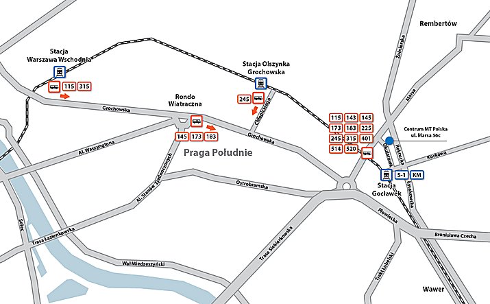- samochodem - ulica Grochowską (zjazd z wielkiego ronda na NE)