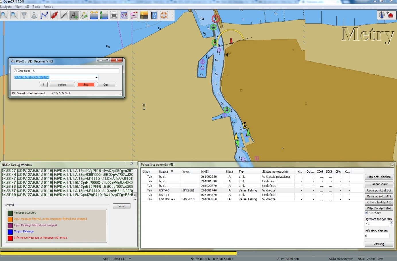 1. PNAIS obsługuje SDR-a w zakresie komunikacji AIS, dekoduje komunikaty AIS i udostępnia je na standardowym porcie sieciowym w UDP postaci strumienia NMEA,