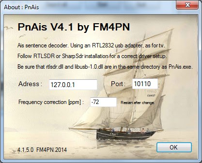 Program obsługuje SDR-a w obu kanałach AIS (87B – 161,975MHZ i 88B – 162,025MHz), dekoduje sekwencje AIS i udostępnia je na standardowym porcie sieciowym UDP (ang. User Datagram Protocol – protokół pakietów użytkownika) – jeden z protokołów internetowych. Jest to protokół bezpołączeniowy, więc nie ma narzutu na nawiązywanie połączenia i śledzenie sesji (w przeciwieństwie do TCP). Nie ma też mechanizmów kontroli przepływu i retransmisji. Korzyścią płynącą z takiego uproszczenia budowy jest większa szybkość transmisji danych i brak dodatkowych zadań, którymi musi zajmować się komputer posługujący się tym protokołem. Z tych względów UDP jest często używany w takich zastosowaniach jak wideokonferencje, strumienie dźwięku w Internecie i gry sieciowe, gdzie dane muszą być przesyłane możliwie szybko, a poprawianiem błędów zajmują się inne moduły. Zatem jeżeli sprzęgacie OpenCPN z sygnałem fonicznym z dowolnego urządzenia i nie wiecie gdzie go przekierować – wybierajcie właśnie UDP. Dopisek TL) .