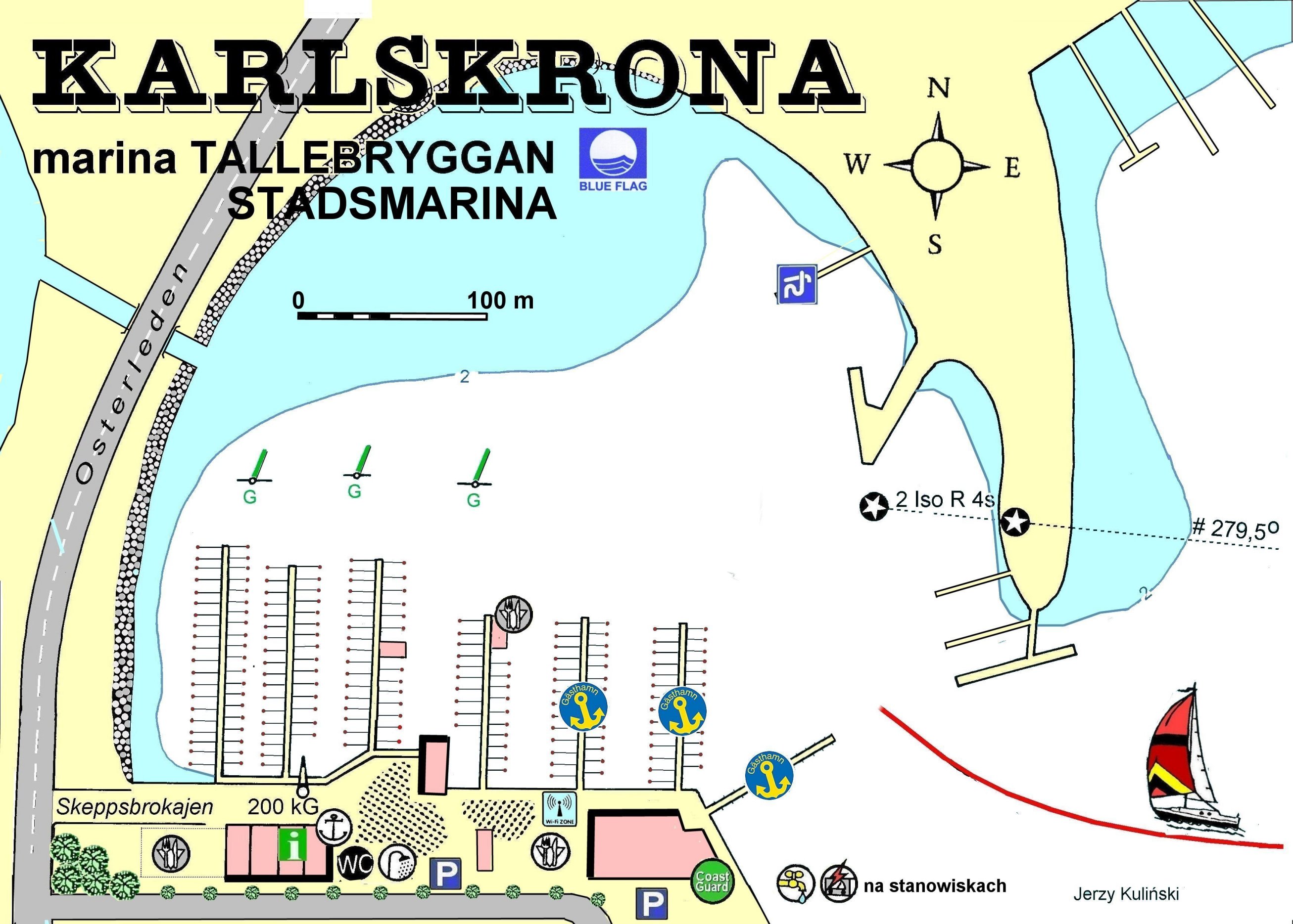 Karlskrona to chyba najczęściej odwiedzany przez polskie jachty - port szwedzki. Głównie dlatego, że ludzie biorą krótkie urlopy. Dlaczego krótkie? O... to rozległy temat. A skoro mało czasu, to jachty kierują się przeważnie do przystani najbliższej centrum miasta. Mimo, że tam najdrożej. Ale ten kto oszczędza na przyjemnościach to raczej na nią nie zasługuje. To też inny rozległy temat. Przepytajcie armatorów jachtowych czy żeglowanie na własnym jachcie się opłaca :-))).