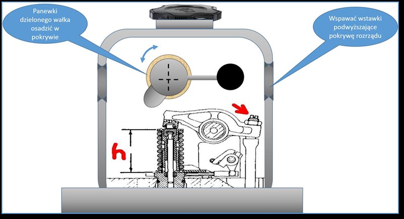 Fig 8 - dekompresator z wałkiem na zewnątrz pokrywy rozrządu
