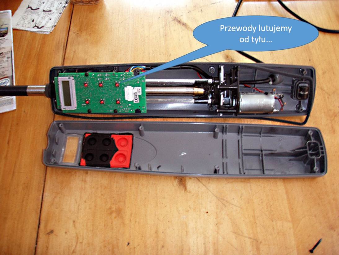 Wracając do rozwiązania. Warto zwrócić uwagę na elegancję prostoty tego rozwiązania. Cięgło może pracować pod różnymi kątami, jest naturalna amortyzacja uderzeń fal na płetwę, a pancerz cięgła wystarczy zamocować w jednym miejscu – tuż przy autopilocie. W istocie docelowo nie używałbym przycisków na autopilocie. Raczej po rozkręceniu dolutowałbym sześć kabli do dużych przycisków wodoodpornych wyprowadzonych na zewnątrz i montowanych gdzieś na owrężnicy kokpitu. Przewody wyprowadzamy przez dławicę. Inny pomysł to sześciokanałowy pilot od otwierania bramy. Większa komplikacja, ale w czasie żeglugi po kanałach przyjemnie się siedzi na materacu na dziobie – z dala od pomruku silnika.