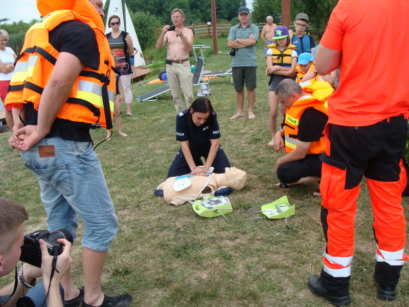 Impreza została zorganizowana na samym początku wakacji. Frekwencja około 250 osób może trochę mniej, może trochę więcej. Trochę szkoda że nauczyciele z okolicznych szkół mając już wakacje nie zrobili akcji i nie przyprowadzili dzieci. Prewencji i informacji nigdy za wiele. Przybyli ratownicy medyczni z pokazem jak należy ratować. Komentowali co się dzieje co przygodne osoby udzielające osoby robią dobrze co źle. Scenariusz był taki że człowiek się wzywa pomocy na wodzie i żeglarze na omedze płynęli wyciągnąć go z wody, ale aby nie było łatwo mieliśmy pozoranta, w którego wcieił się nasz klubowy kolega. Na jachcie był Fantom. Akcja ratownicza na brzegu wezwanie pogotowia – z pełną symulacją i ambulans przyjechał w takim czasie jakby jechał z najbliższej bazy. Zaskoczeniem dla wszystkich był czas kiedy „pacjenta” w tej roli fantom zapakowano do karetki pogotowia wyniósł on 45 minut. Przy okazji „gapie” byli zaangażowani w pomoc taką jak kierowanie karetki pogotowia gdzie ma jechać (aż od drogi głównej) bo jak wytłumaczyć dyspozytorowi pogotowia jak trafić nad brzeg?