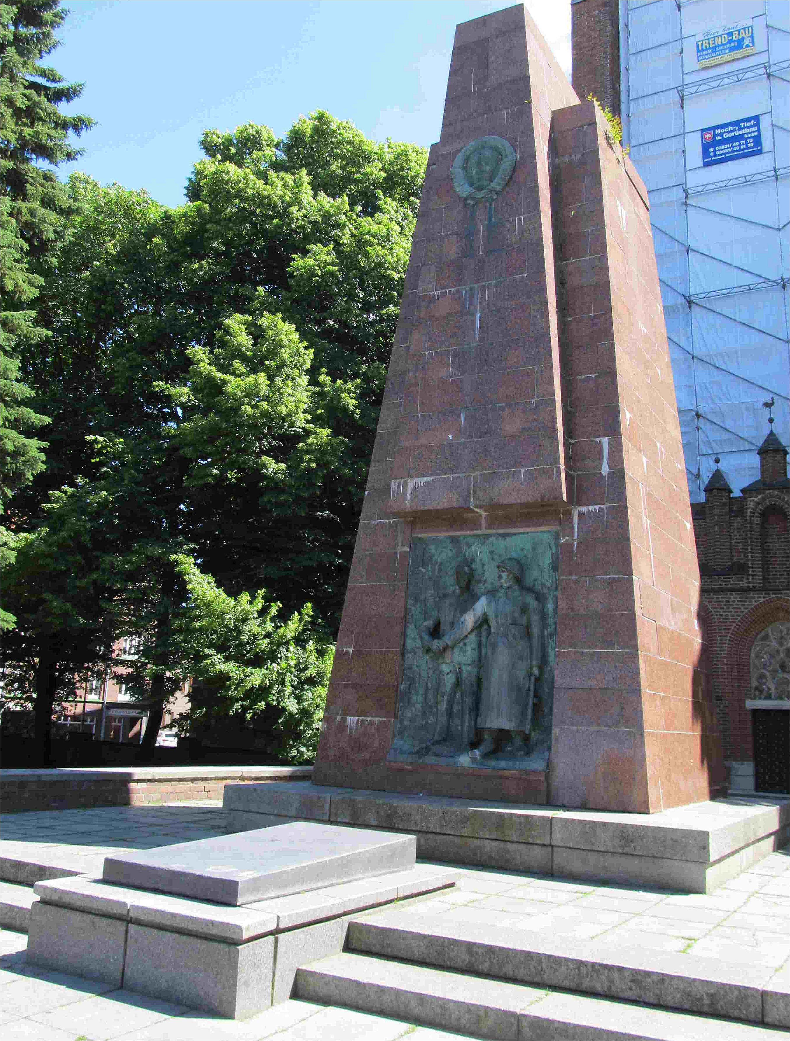 grobów żołnierzy Armii Czerwonej) pomnik braterstwa broni NRDowsko-Radzieckiej, choć napisy z płyty przed pomnikiem - zniknęły.