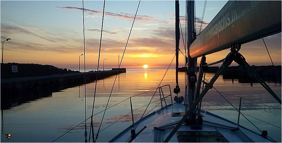 Opcje były dwie: Sassnitz lub Dziwnów. W tym pierwszym byliśmy już klika razy, poza tym prognozy wiatrowe na piątek bardziej przemawiały za tym drugim portem. O 0430 ruszyliśmy więc prosto we wschodzące w główkach portu słońce, a potem kursem 190, do odległego o 60 mil Dziwnowa. Przyznam, że nigdy tam nie byłem, a słyszałem wiele dobrego o zmodernizowanych marinach w ramach Zachodniopomorskiego Szlaku Żeglarskiego.