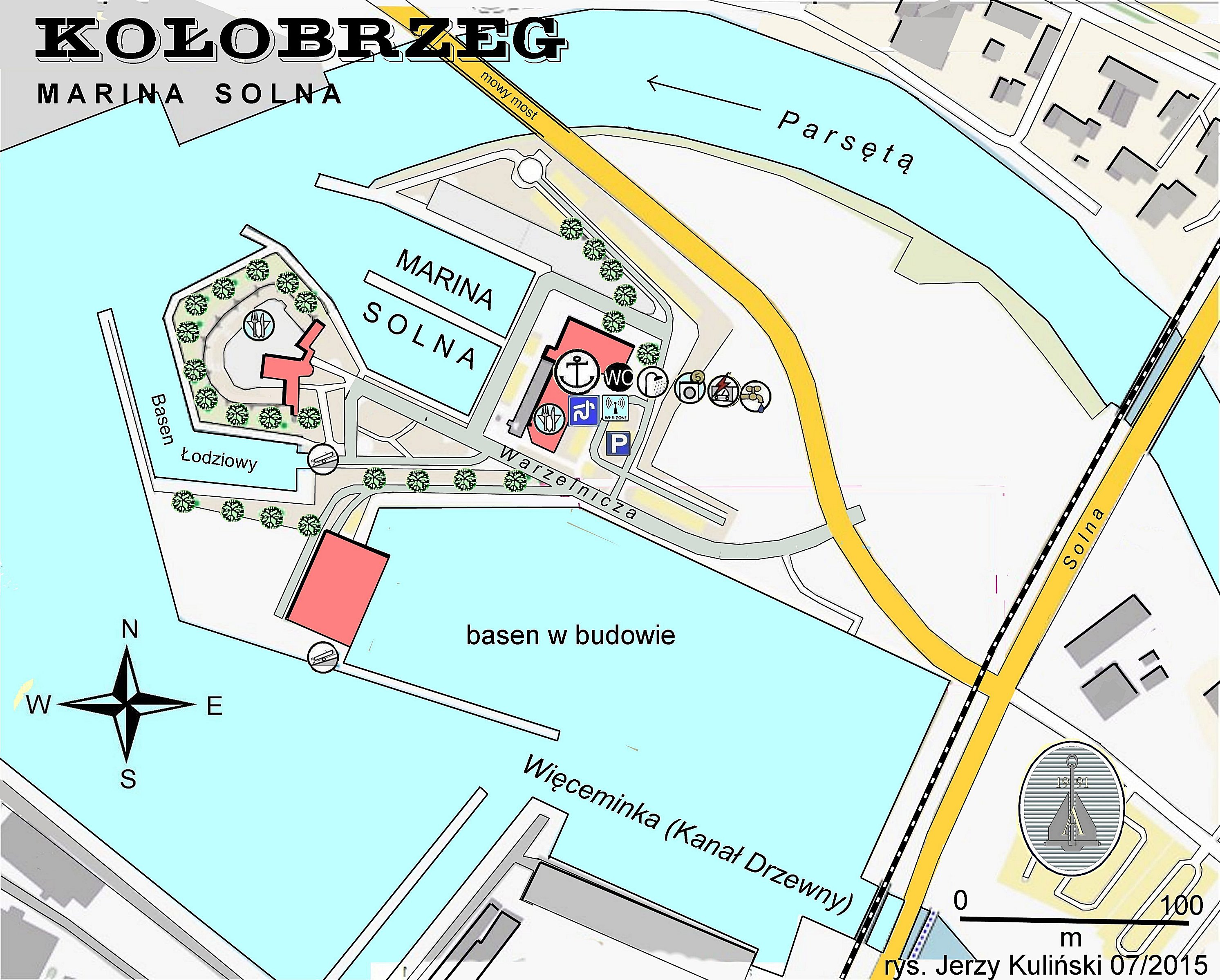 Kilka słów opisu, kilka fotografii ilustrujących zakres modernizacji przystani jachtowej - teraz zwanej MARINA SOLNA. Od zeszłego roku to i owo się zmieniło nie tylko w obrębie przystani. Przede wszystkim w oczy rzuca się nowy most nad Parsętą. No i oczywiście budowa nowego basenu przylegającego do Mariny Solna od strony południowej (poszerzenie Kanału Drzewnego). Przypominam - Kołobrzeg to tylko 40-tysięczne miasto powiatowe, ale w miesiącach letnich to chyba przebywa w nim 100 000.