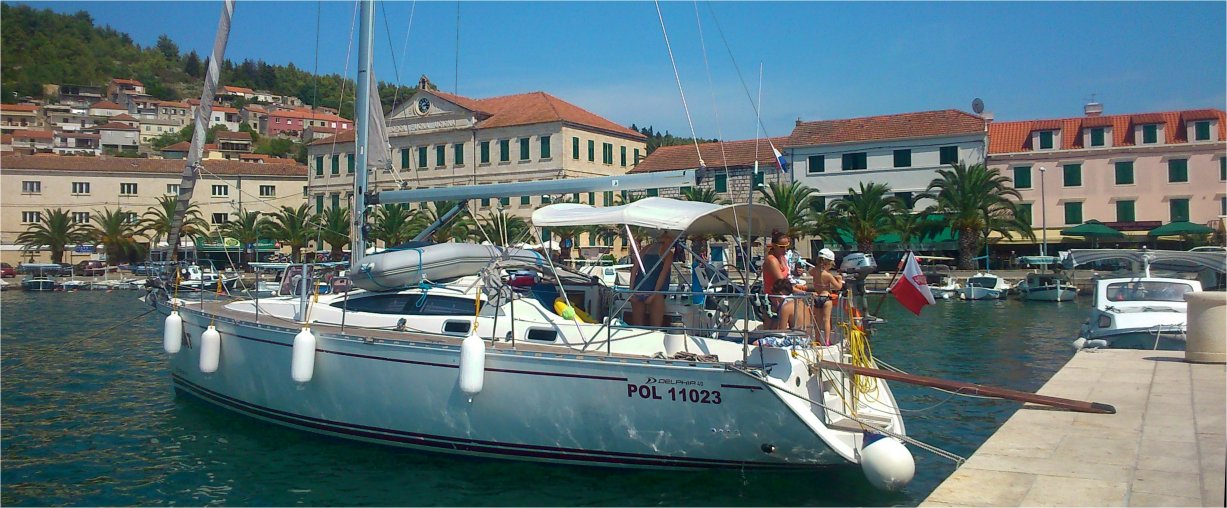 Skąd jacht? Firm są setki. Nasza Delphia, co sympatyczne pod polską banderą była wyczarterowana od firmy NOA YACHTING za pośrednictwem niesamowicie sympatycznego i pomocnego Tomka Sosina (Sajmona) z agencji Sailing Whale Academy. Cena za czarter była porównywalna, a nawet niższa niż tego typu jacht na Bałtyku. Delphia jest zarejestrowana na 10 osób, ale – umówmy się – pływać w dziesiątkę to byłaby męka, gdyż np. przy stole w kokpicie z trudem siada 8 osób (a w mesie jest za gorąco). W pierwszym tygodniu było nas 6 dorosłych i 3 dzieci, w drugim tygodniu 4 dorosłych i także 3 dzieci. Pierwszy tydzień gotowaliśmy na jachcie, w drugim co drugi dzień jadaliśmy w restauracjach, co – o dziwo - było tańsze. A to dlatego, iż wiele knajpek nie pobiera opłat za postój przy ich pomostach – jeśli zjemy u nich kolację.