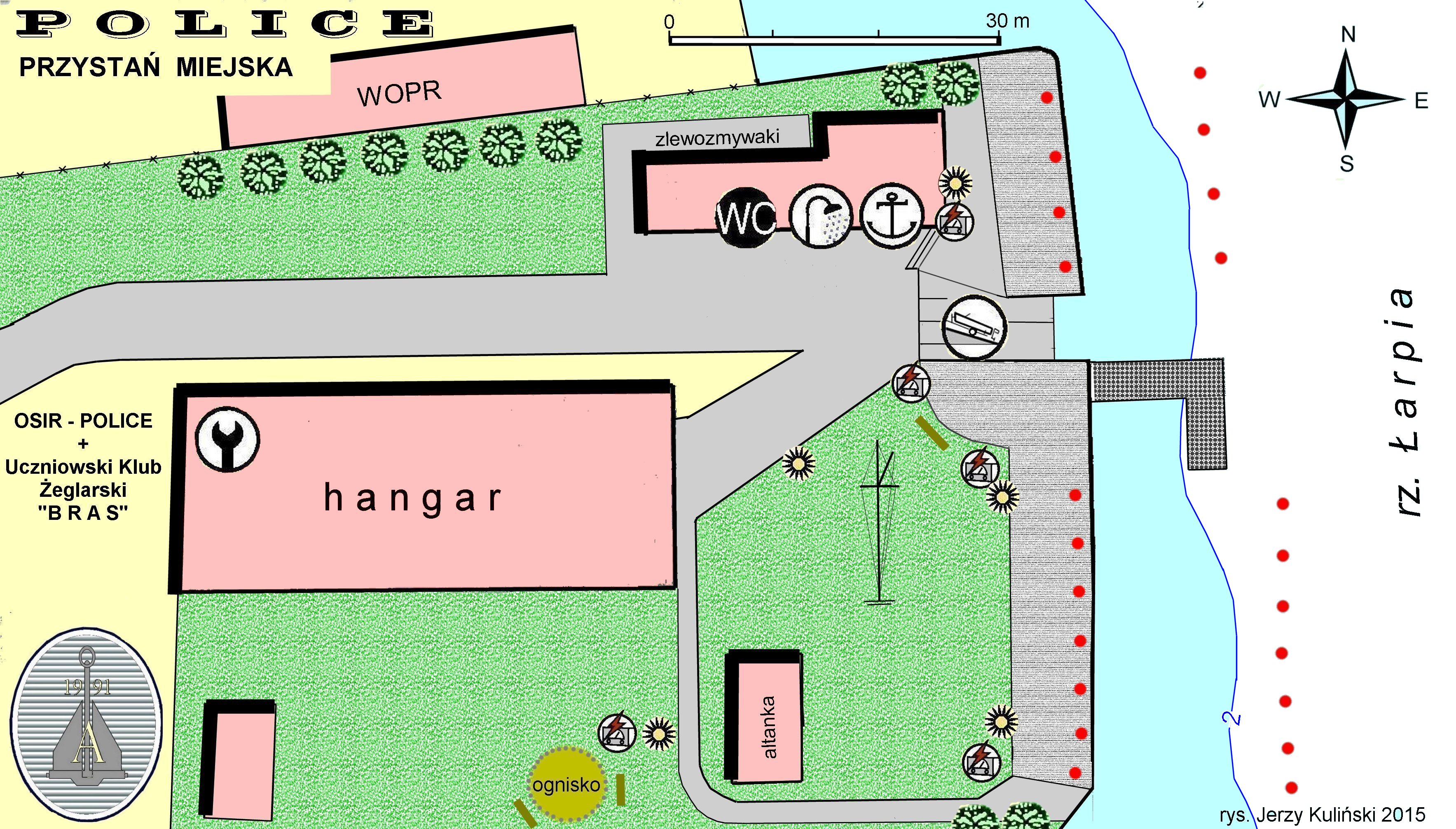 Dekadę temu zrobiłem locyjkę "Zakamarki Zachodniego Bałtyku". Jeszcze wcześniej "Przedsionek Morza Północnego". Lubię używać takich potocznych określeń, bo podkreślają nieoficjalny, indywidualny, rozpoznawalny charakter moich opisów, planików i mapek. W zeszłym roku "rozpracowywałem" zakamarki wschodniego wybrzeża Zalewu Szczecińskiego. W tym roku dobrałem się do przystani po przeciwległej stronie. Przyszła kolej na Police przed którą stoi atrakcyjna perspektywa stania się "przedsionkiem" Szczecina. Obecnie funkcjonujące przystanie żeglarskie położone są na zachodnim brzegu rzeczki Łarpia - stanowiącej zachodni "wyrostek robaczkowy" rzeki Odra.