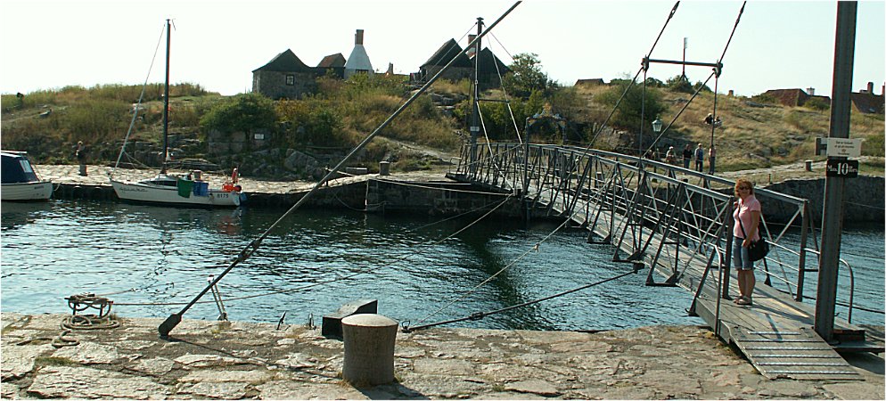 Christianso - zwodzona kładka. W głębi zacumowany jachcik Autora.
