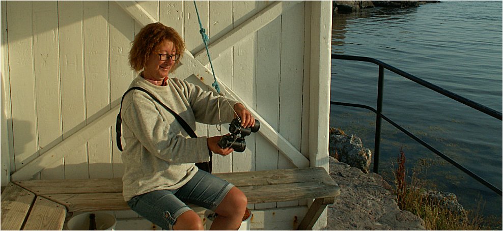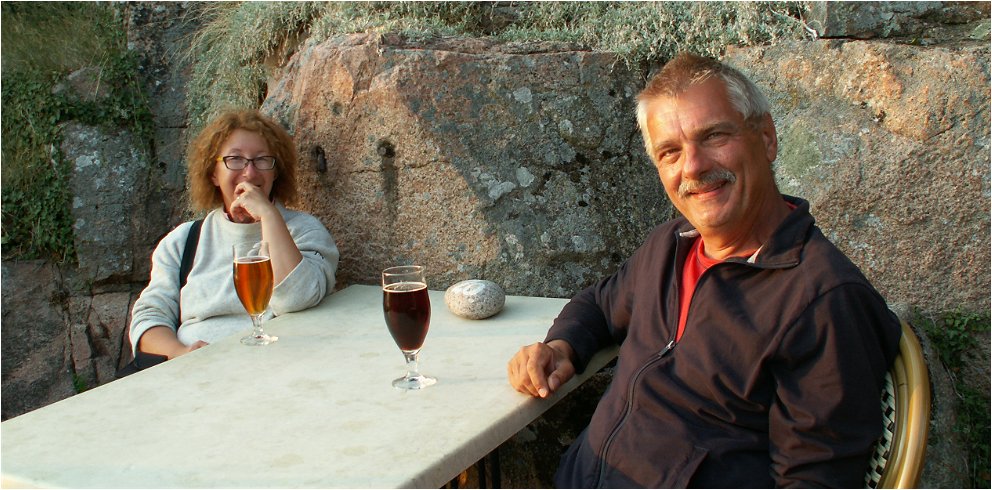 Tegoż dnia pozostała nam jeszcze: sesja zdjęciowa z Panem Głuptakiem w roli głównej, który z jakichś tylko sobie znanych powodów upodobał sobie szafkę przyłącza elektrycznego dla jachtów (tamże ma on także zdjęcie zamieszczone w otrzymanym na wyspie darmowym folderze) i wypicie o zachodzie słońca szklaneczki duńskiego piwa, chyba najdroższego w Europie, w jedynej na wyspie restauracyjce. Można tu jeszcze wspomnieć o oswojonych, jak ptactwo domowe i wręcz bezczelnych mewach, których zachowanie świadczyło o tym, że nie miały najmniejszych wątpliwości, do kogo należy ta wyspa. Dość tych opisów, resztę trzeba zobaczyć samemu! To naprawdę piękne i malownicze miejsce na Ziemi.