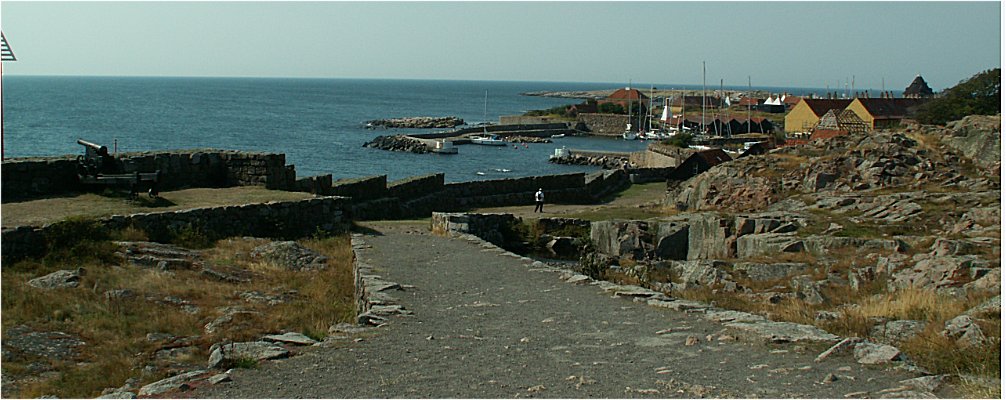 Niebawem wyłoniła się zza horyzontu sylwetka twierdzy Christianso. W miarę zbliżania się można było dostrzec foki wylegujące się na kamieniach, które po bliższym przyjrzeniu się okazały się goluteńkimi młodymi Dunkami i Niemkami opalonymi na mahoń. Ponad murami witała nas bateria dział. Ponieważ zaopatrzeni byliśmy w stosowną locję „Mistrza Jerzego” wejście do portu w tych warunkach okazało się dziecinnie łatwe. Zajęliśmy, można powiedzieć, honorowe miejsce w loży, tzn. zacumowaliśmy longsajdem przy samej kładce po stronie wyspy Frederikso. Zachwycił nas kameralny nastrój panujący na tej wysepce, brak tłoku i zero tzw. przemysłu turystycznego. Oblecieliśmy w godzinę całą wysepkę Christianso, podziwiając ogrom pracy włożony w budowę murów, potem latarnia morska z więzieniem, obiad na „balkonie” strasznie wielkiego i dzielnego okrętu, co się zwie „4 piwka” i spacer po wysepce Frederikso. Pod wiatą widokową znaleźliśmy lornetkę wiszącą na sznurku, by się przypadkiem nie przewróciła i nie potłukły szkła, która umożliwiła w świetle zachodzącego słońca podziwianie dzikiego ptactwa na trzeciej niezamieszkałej wysepce Vesterskar i fal rozbijających się o skały wystające z wody w ciasnym kanale między tymi wysepkami. Ciszę tę zakłócił statek wycieczkowy płynący z Bornholmu, który na pełnych obrotach silnika wpłynął pomiędzy te skały, tak że pasażerowie mieli je na wyciągnięcie ręki, zrobił ostry wiraż o 180 stopni i wpłynął do portu od północnej strony…
