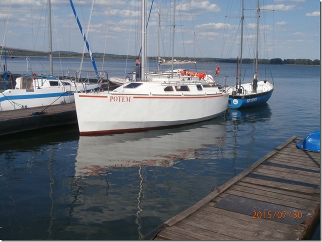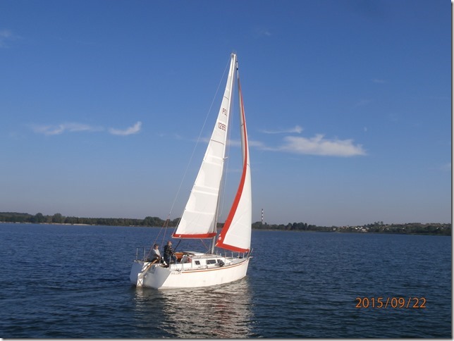 Pierwsze wrażenia: pływa dobrze, ster jest zrównoważony, lekko chodzi i “można go obsługiwać palcem”, jacht jest dość zwrotny. Pod fokiem marszowym i grotem płynąłem 4,8 węzła przy 3B. Teraz mam założoną większą genuę na rolerze oraz lazy jacka na grocie..
