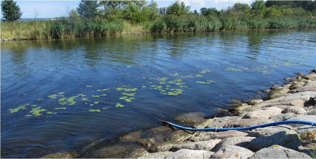 „Nowy port” jest ekstremalnie płytki (szacuję, że dużo poniżej 1 metra), na wejściu dodatkowo leży na dnie (!) kabel energetyczny – chyba zasilający oznakowanie wejścia.