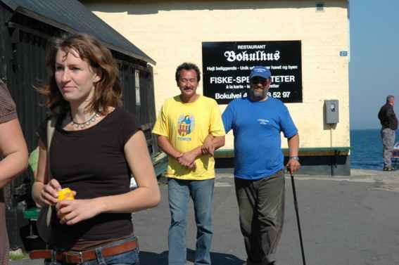 Po Christianso - Gudhjem. Tu oczywiście uczta rybna! Jedna z kelnerek była Polką. za jej radą wykupiliśmy "zestaw": jedno piwo i metalowe sztućce za 90 koron. Z tymi sztućcami (metalowymi) mieliśmy dostęp do stołu szwedzkiego tak długo, jak nie wypuściliśmy ich z rąk. Ja z Markiem urządziliśmy sobie konkurs jedzenia krewetek. Po pierwszych 50 przestaliśmy dalej liczyć, ale nie jeść... Konkurs został nierozstrzygnięty, a zawodnicy zgodnie wrócili na jacht. Konkurs dokończymy w przyszłym roku.