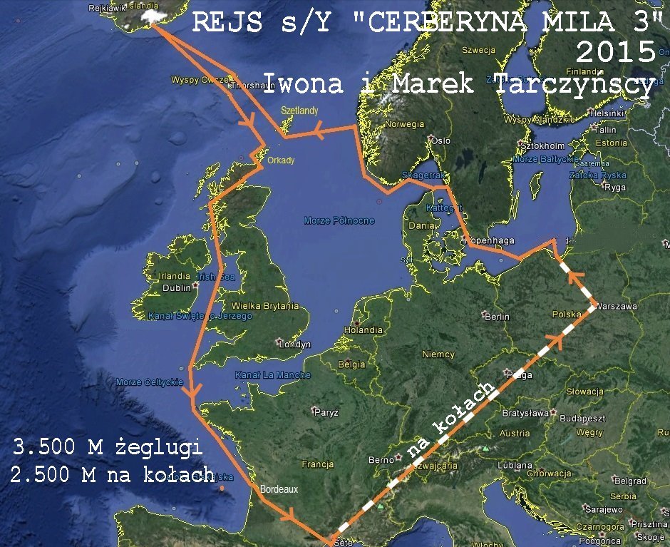 Zawinęliśmy do 56 portów, leżących w Polsce, Danii, Szwecji, Norwegii, Islandii, Szkocji, Anglii i Francji oraz na terytoriach ograniczonej autonomii, jak Szetlandów, Wysp Owczych, Orkadów, Wyspy Man i na wody terytorialne Irlandii. Wg wskazań GPS (komputera podróży) pokonaliśmy ok. 3500 Mm i drogą lądową ok. 2500 km. Łódka przewieziona była z Jacht Klubu Politechniki Warszawskiej nad Zalewem Zegrzyńskim do Górek Zachodnich i z Frontignan Plage nad Morzem Śródziemnym do Nowych Załubic, także nad Zalewem Zegrzyńskim.
