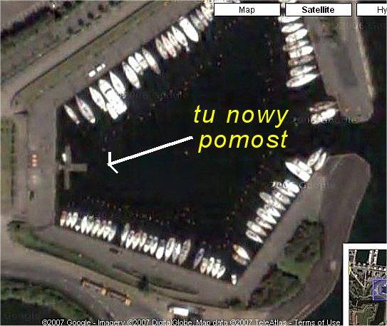 Zajrzałem do guglowych fotek satelitarnych i pomost ów znalazłem. Weźcie do rąk cienkopisy i dorysujcie pomost na planiku w waszych egzemplarzach ŻAGLI.