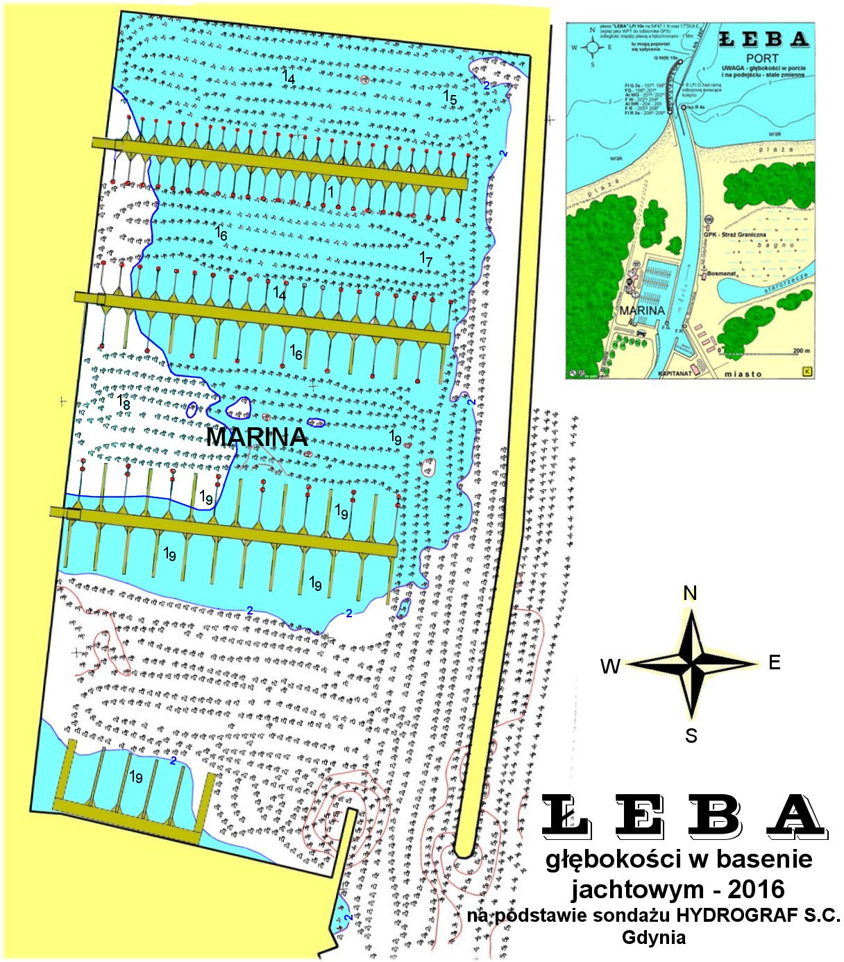 Przesyłam aktualny sondaż wejścia do mariny w Łebie i samej mariny- może pomoże kilku jachtom uniknąć utknięcia między główkami, albo wybrać sobie miejsce do zacumowania adekwatne do swego zanurzenia.