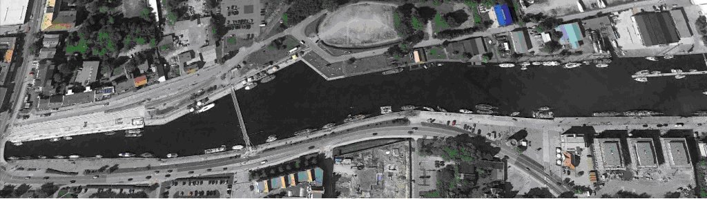 To tutaj, po obu stronach mostu i obu brzegach rzeki (źródło Google Earth)