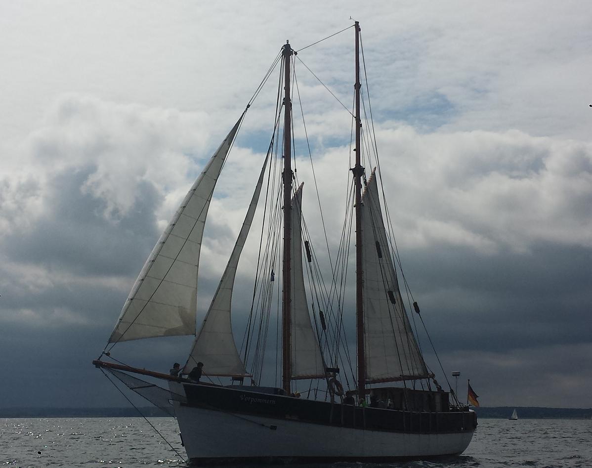 [i] „Vorpommern” – dwumasztowy szkuner gaflowy zbudowany w 1950 roku w stoczni C & H. Bladt na wyspie Dänholm w Stralsundzie na bazie dębowego kadłuba kutra rybackiego. Długość kadłuba 17,76 m (z bukszprytem 21,00m), szerokość 5,65 m, łączna powierzchnia żagli 150 metrów kwadratowych. Armatorem jest Sozialwerk Vorpommern e.V., dzięki czemu statek bywał w Szczecinie w ramach polsko-niemieckich rejsów z „trudną młodzieżą”.