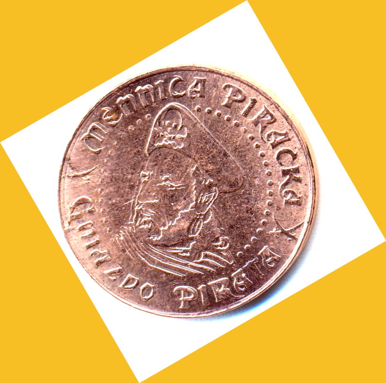 Na koniec coś śmiesznego – otrzymałem okolicznościową monetę piracką.... bitą ręcznie (tzn. dużym młotem) na poczekaniu w hali targowej. W miedzi lub srebrze.