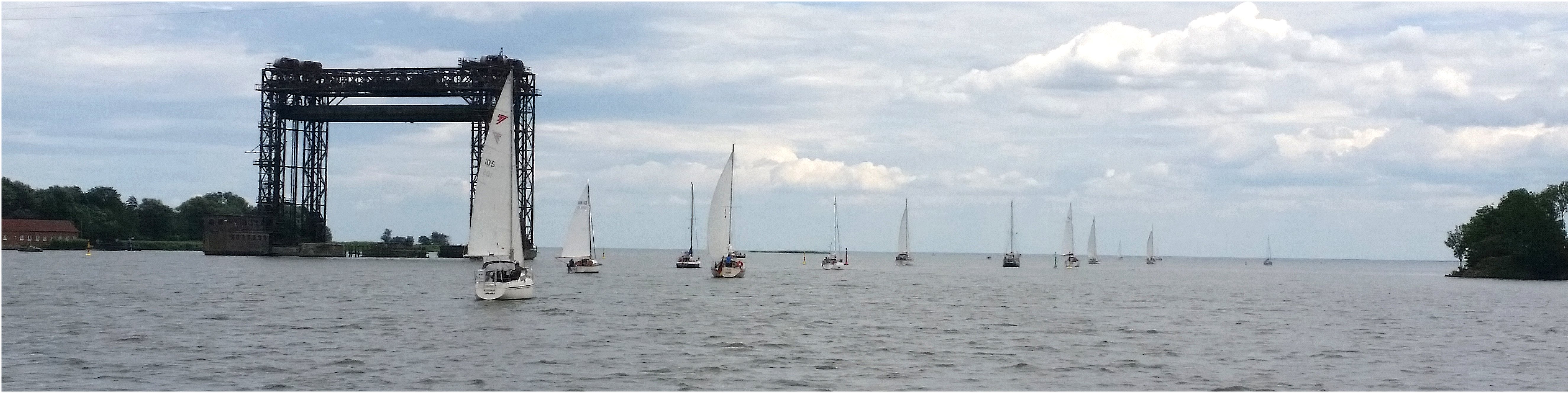 Nauczeni poprzednim dniem, w trasę do przystani w Karmin, tuż za pozostawionymi na końcu Zalewu fragmentami starego mostu zwodzonego, wyruszamy już o 7.00 rano. Ale jak to bywa z Neptunem, dodatkowo obłaskawionym poprzedniego dnia odpowiednimi płynnymi darami, powiał nam wschodni wiatr i już po niecałych trzech godzinach mijamy miejsce planowanego postoju. Krótki rzut oka na mapę i płyniemy w kierunku zwodzonego mostu w Zecherin, tym bardziej, że informacje w locji wskazują na jego otwarcie o godz. 12.00. Upewnia nas jeszcze w tym spora grupa nie tylko niemieckich jachtów, oczekujących po obu stronach mostu. Szybko jednak przekonujemy się, że jesteśmy jednak we wschodnich Niemczech. Godzinne oczekiwanie przed mostem, czyli pływanie w kółko, po niewielkim akwenie i nasilającym się wietrze, powoduje nerwowe reakcje wszystkich oczekujących. Jak udaje się nam dowiedzieć, nawet telefony wykonywane w tej sprawie przez Niemców niczego nie wyjaśniają. Co ciekawe dokładnie to samo spotyka nas w drodze powrotnej, też sporo oczekujących jachtów po obu stronach mostu i godzinne opóźnienie w jego otwarciu.