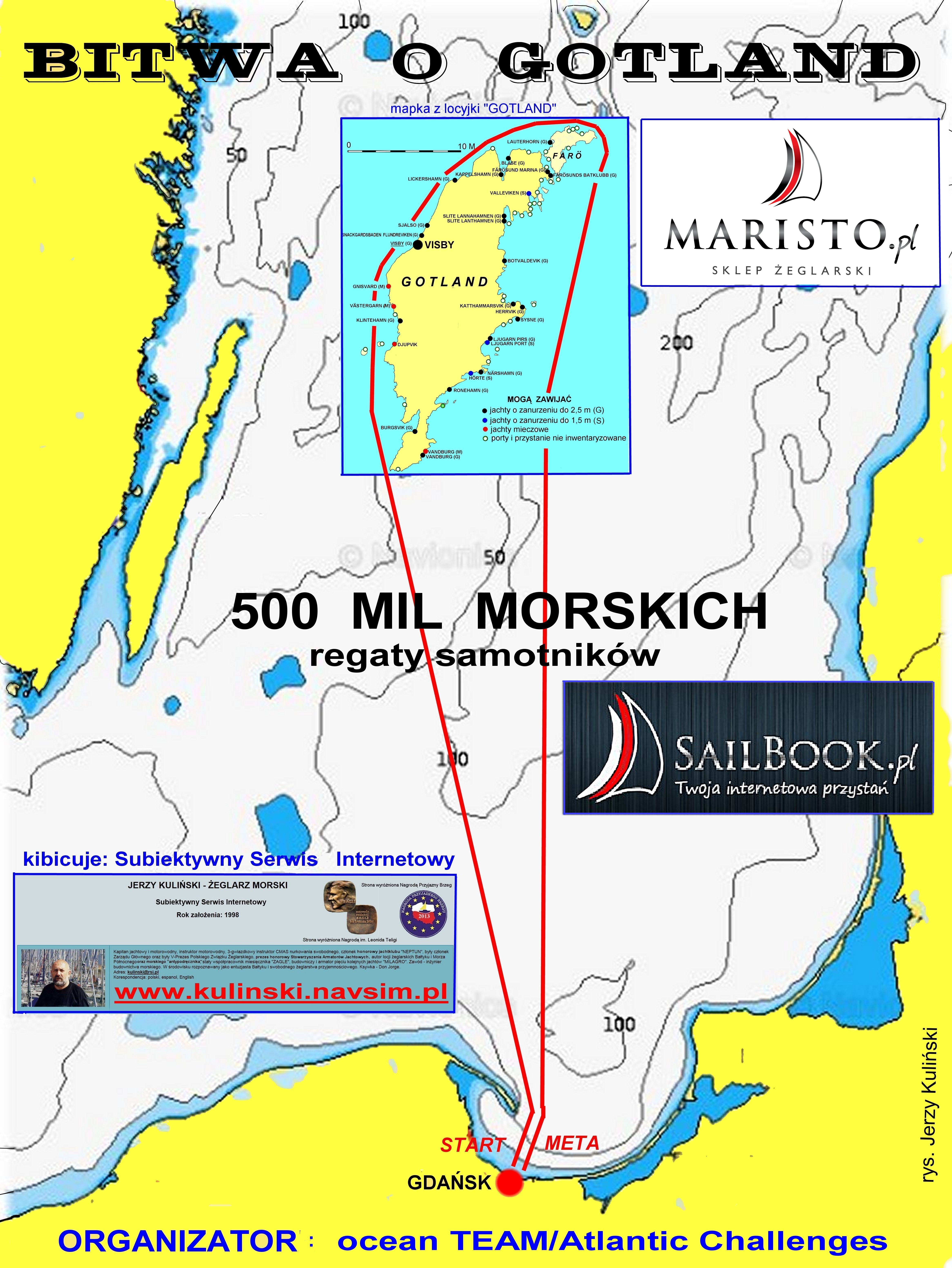 Start i meta w żeglarskiej stolicy Polski, trasa 500 + mil morskich, trasa dookoła pięknej wyspy Gotland. Zważcie - jesień, czyli szorski Bałtyk. Dyrektorem imprezy jest pomysłodawca i trzykrotny uczesttnik - Krystian Szypka. Organizatorem imprezy jest Ocean Team/Atlantic Challenges oraz Sklep Żeglarski MARISTO.pl. Sponsorem strategicznym "Bitwy o Gotland – Delphia Challenge 2016" jest firma Delphia Yachts. Pozostałymi sponsorami są: Work Service, Kompas, Bogmar, Charter.edu.pl i Henri Lloyd. Partnerami: Klub Żeglarzy Samotników, OSA, MORE Gdańsk. Medialnych opiekunów mnóstwo, w tym oczywiście i tradycyjnie Subiektywn Serwis Internetowy.