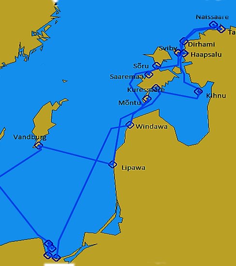 W ubiegłym roku dopłynęliśmy do północnego końca Bałtyku, ale zabrakło czasu na zwiedzanie. Na tegoroczny cel obraliśmy Estonię. Kraj mało znany a warty zobaczenia. Do załogi oprócz kolegi Piotrka z którym kilka lat razem pływamy dołączył Stanisław. Tradycyjnie rejs rozpoczynamy z YKP Jadwisin. Transport lądowy do NCŻ Górki Zachodnie. Ruszając z Polski wiedzieliśmy, że wiatr będzie tężał, ale kierunek w plecy i słoneczko zachęcały. W tym etapie pobiliśmy wszelkie nasze dotychczasowe rekordy prędkości, średnia 6,6 w przez 220 mil. Po 33 godzinach płynięcia zacumowaliśmy w Windawie na Łotwie. Tu już byliśmy, więc bez wielkiego zwiedzania ruszyliśmy w stronę Saremy.