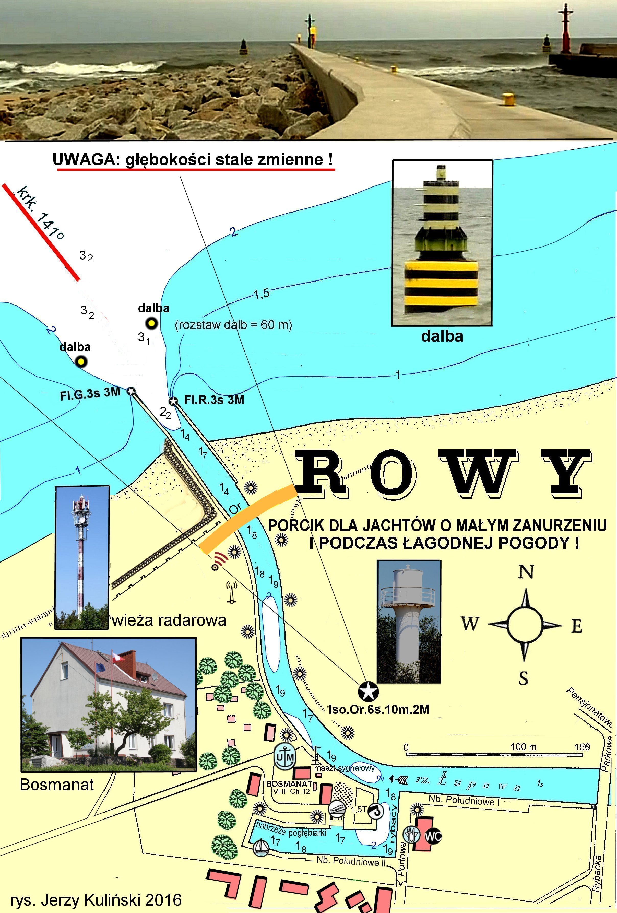 Dalby w Rowach stoją tam od końca 2014 roku. Wyposażone są w odbojnice obrotowe typu "donut fenders"- są to odbojnice nanizane na rurę stalową, które przy otarciu