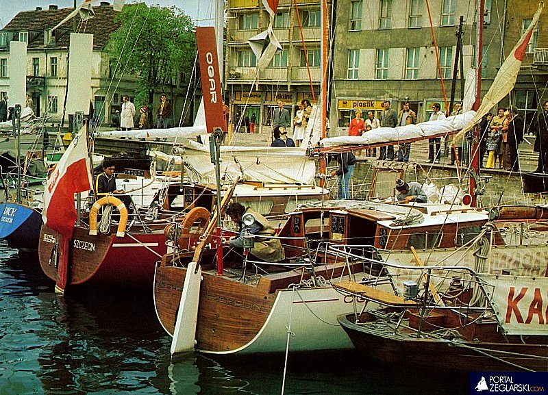 Niedługo potem zjawił się gość dla mnie najbardziej zaskakujący. Biało-czerwono-niebieska bandera. Czechosłowak?! Na szczęście przy stoliku trzebieskiej stołówki siedział ze mną Tadziu Rusek, Polak z Zaolzia i on wiedział, kto to Richard Konkolski. Ze względów rodzinnych bardzo mnie to zainteresowało. Dzięki pomocy Tadzia udało mi się dowiedzieć kilku szczegółów, o tym, że „Nike” to nieco przedłużona polska „Zośka” Zbyszka Milewskiego, że wybiera się startować w przypadających na kolejny rok 1972 regatach OSTAR, w których startowali także Polacy.